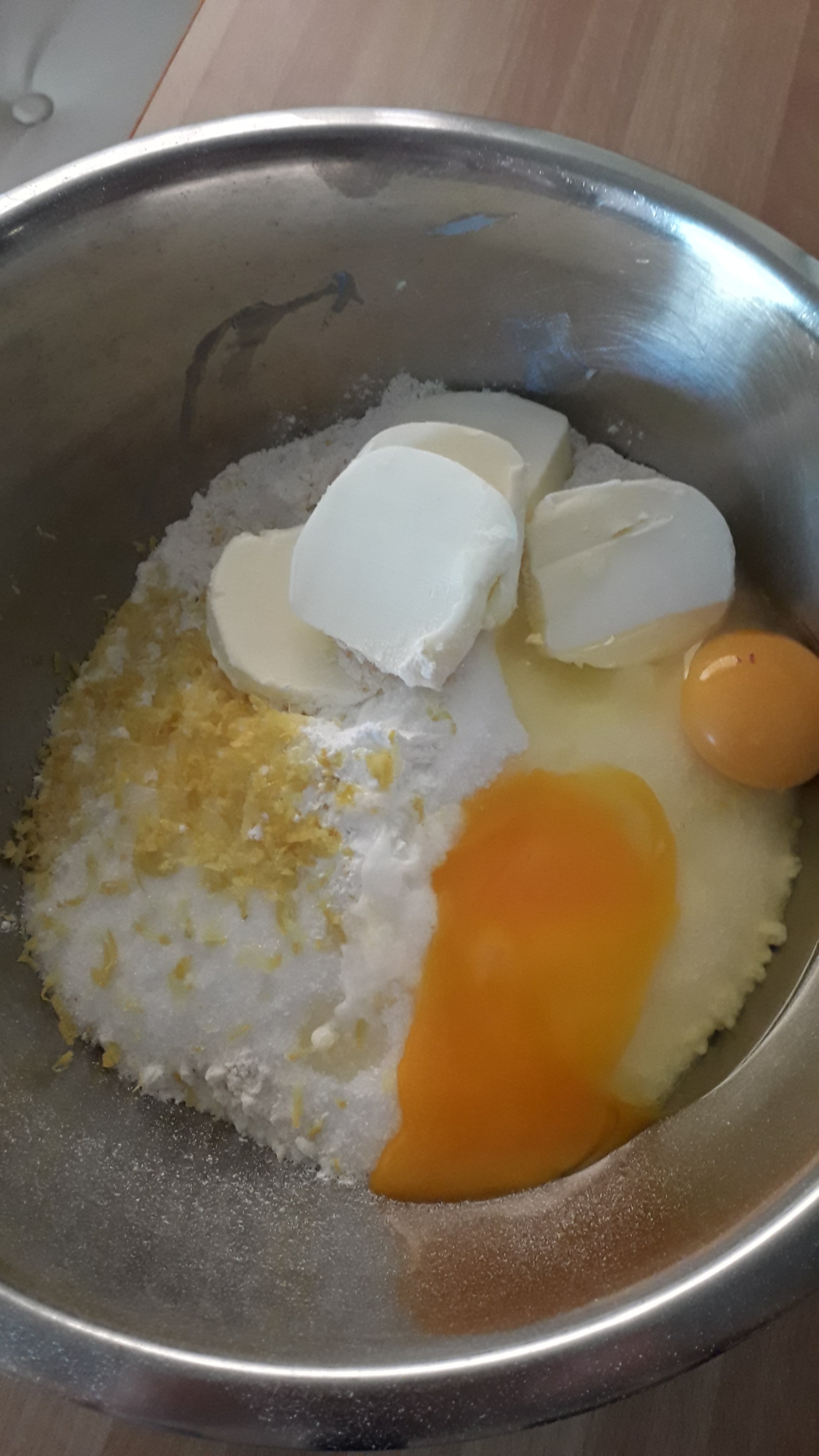 In una terrina metti il sale la farina setacciata lo zucchero il limone grattato le uova e il burro a pezzi e lavora velocemente