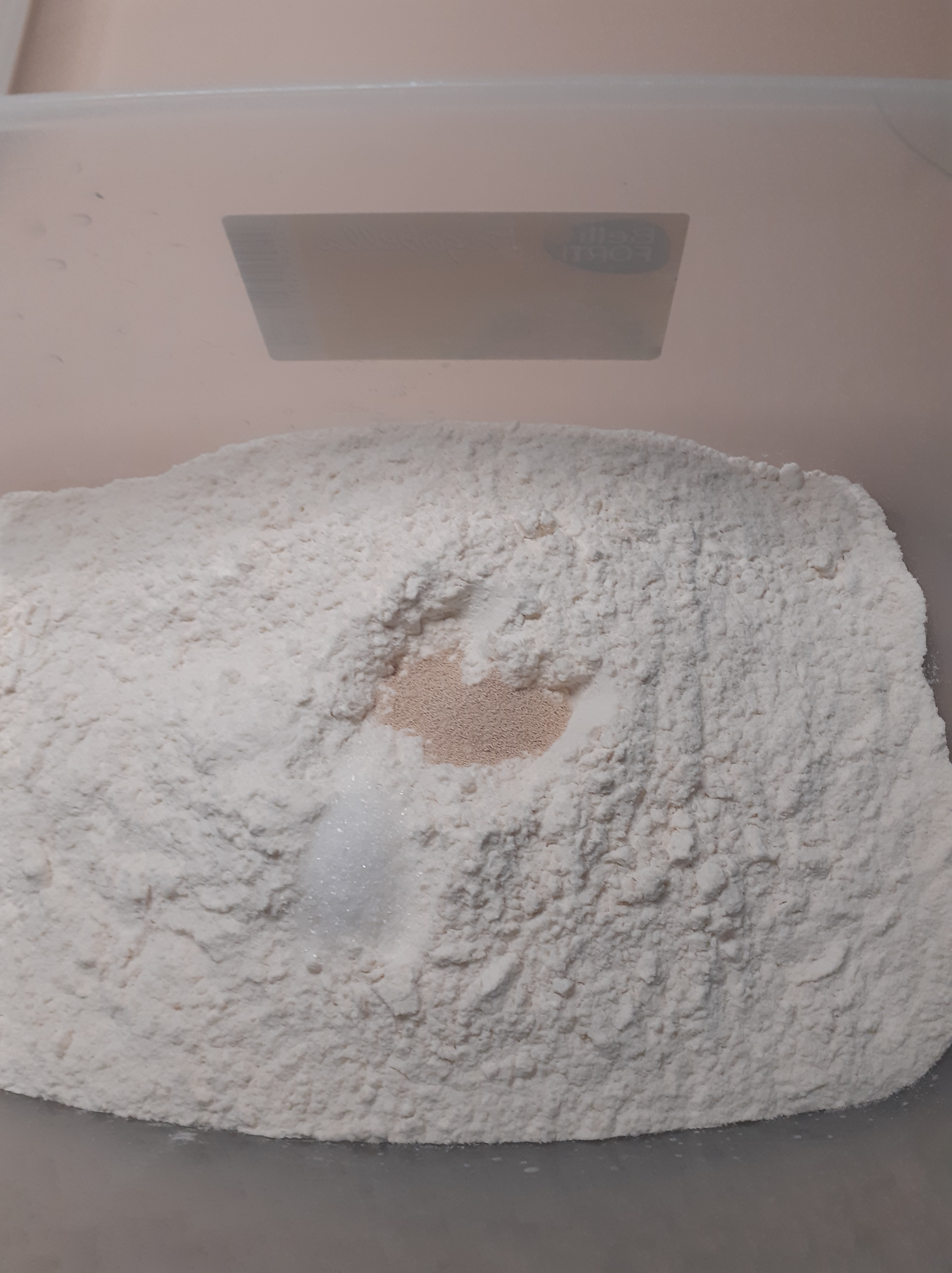 Ore 8 di sabato, in un contenitore mettiamo le farine lo zucchero e il lievito secco