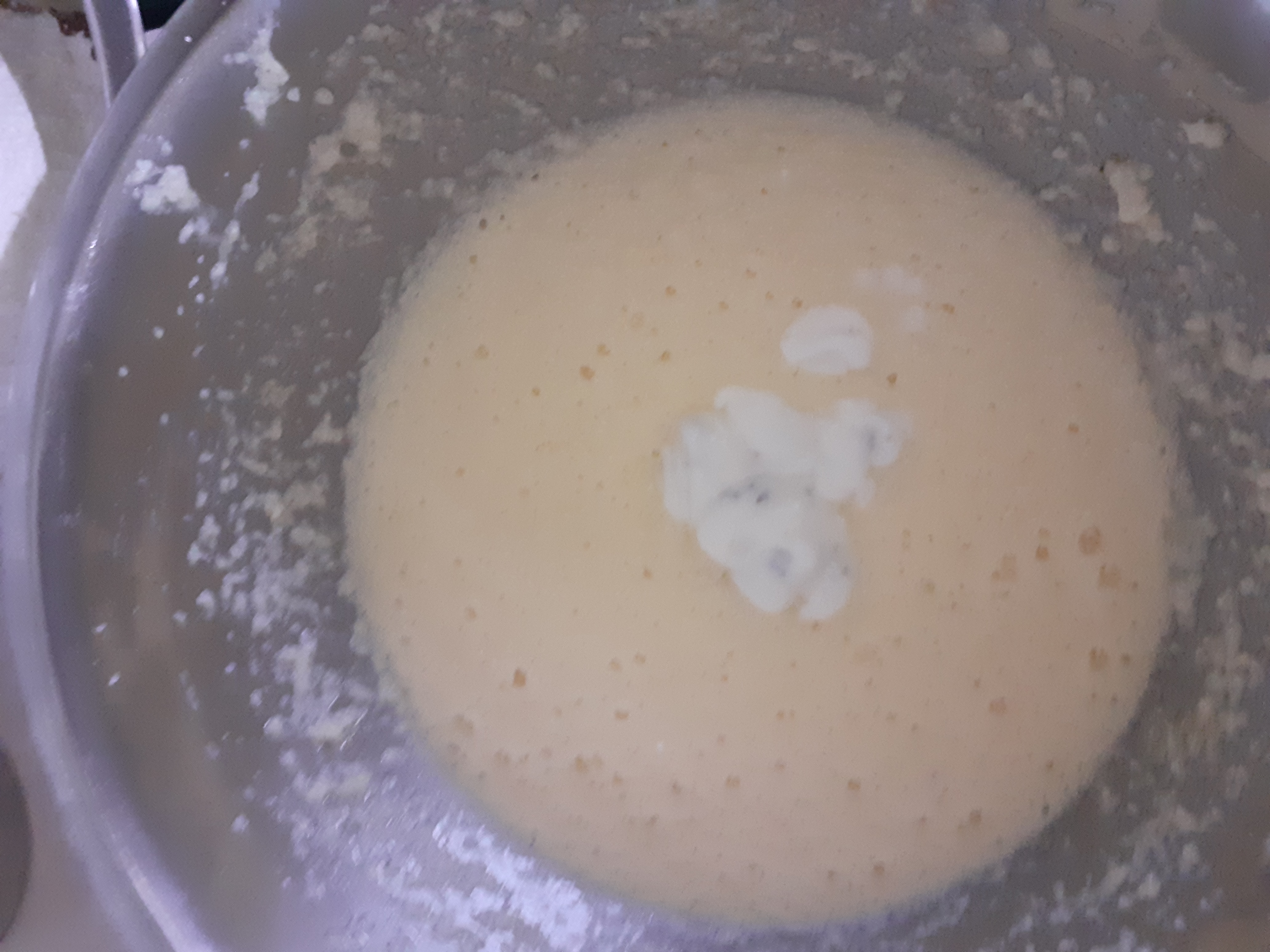 Dopo aver incorporato tutte le uova mettiamo lo yogurt e mescoliamo