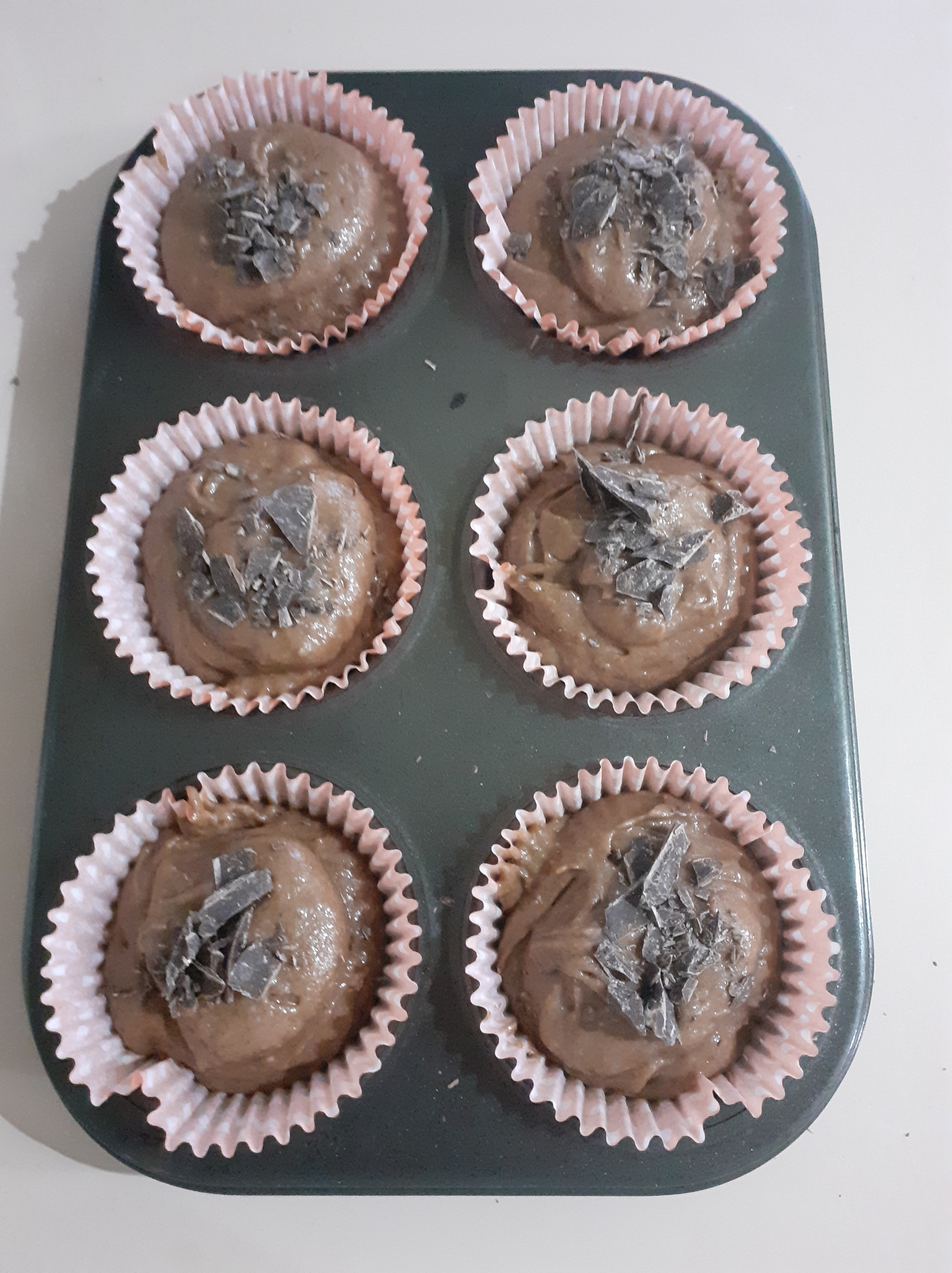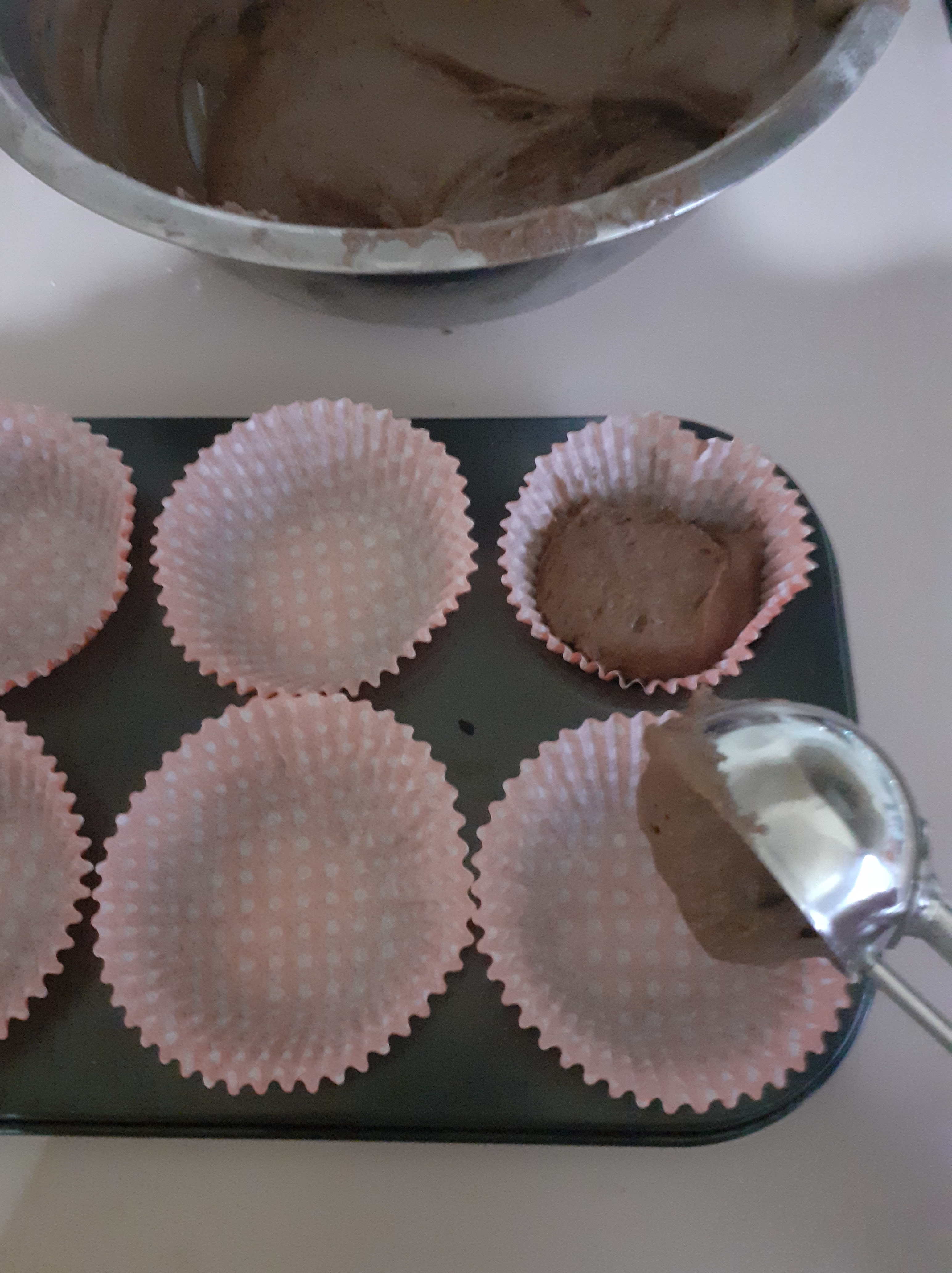 Mettiamo il composto nei pirottini di media misura, fatti carta morbida se avete la teglia dei muffins oppure rigidi se non l’avete, né usciranno all’incirca 10 pezzi
