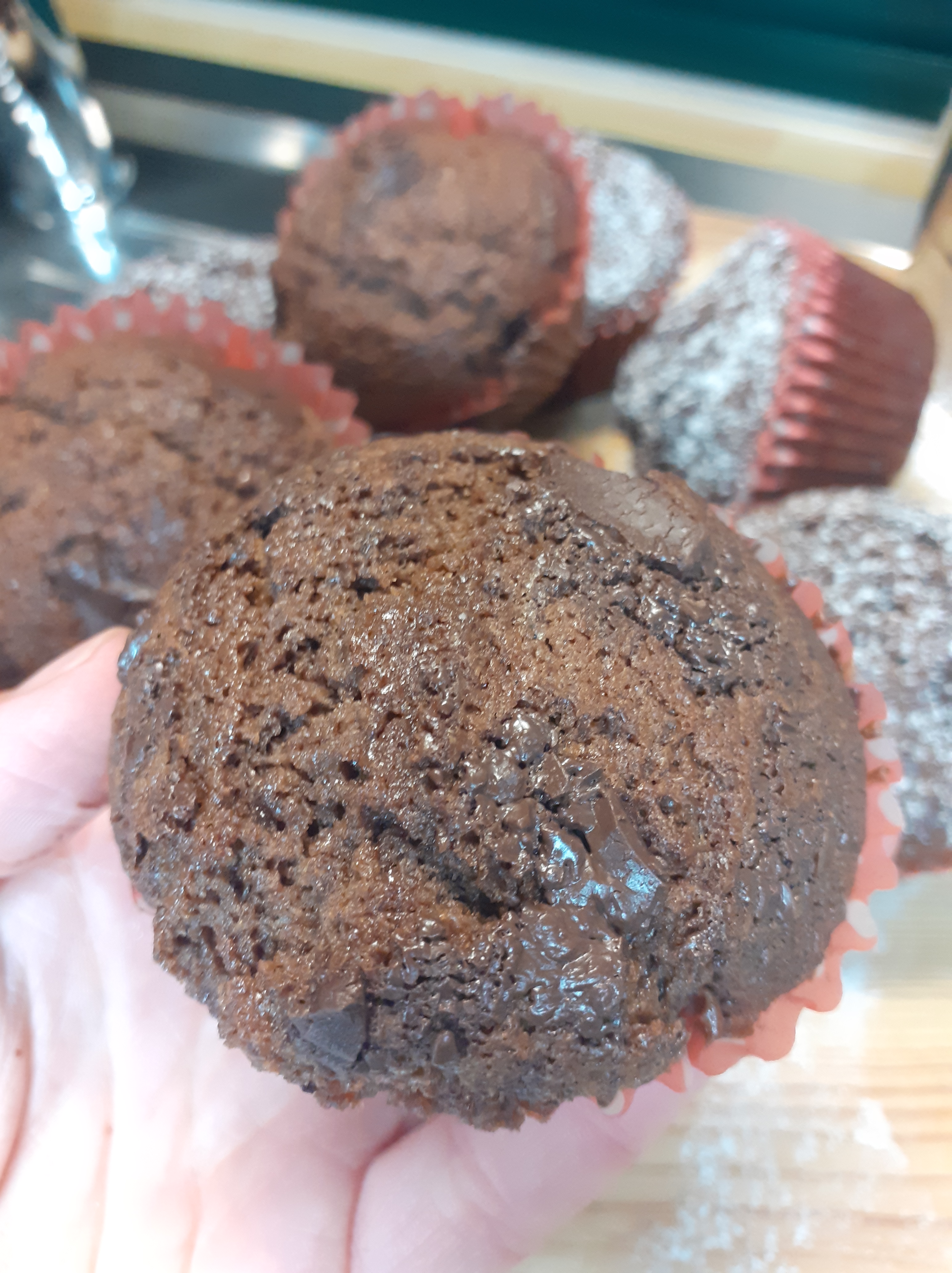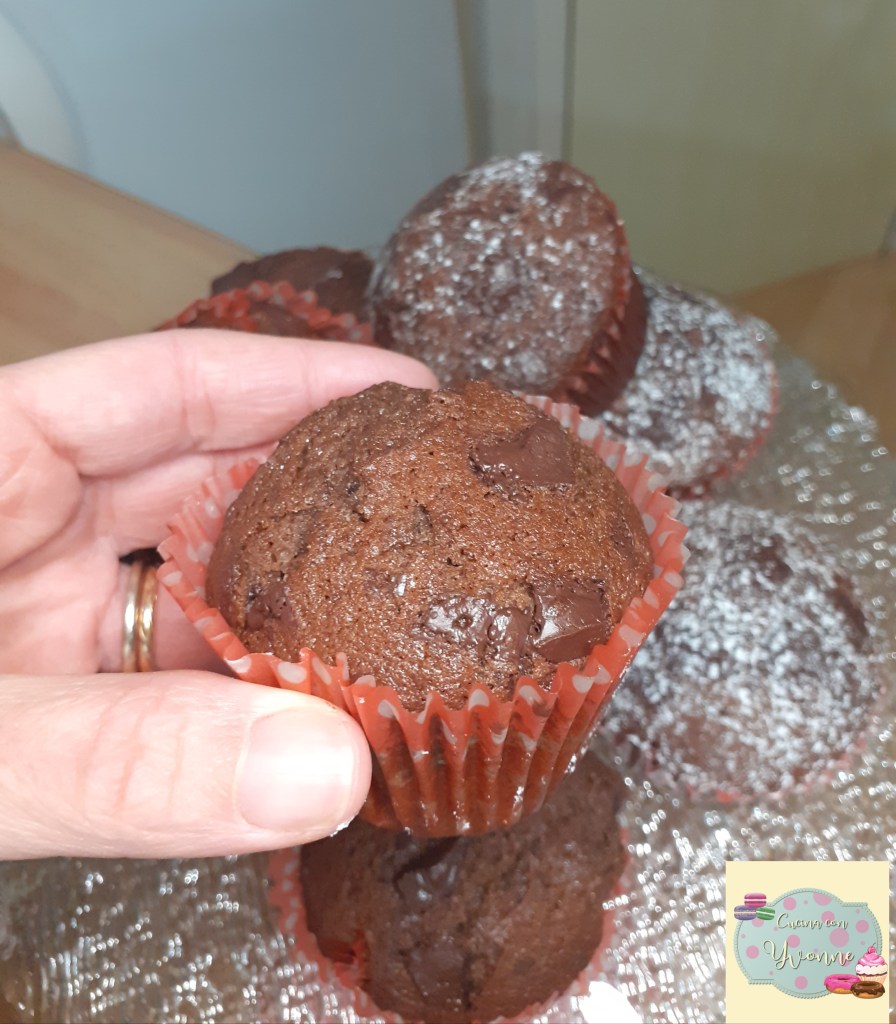 Ecco pronti i nostri Muffins al cacao con goccie di cioccolato, sono strepitosi nel latte caldo un cappuccino ma anche come merenda e succo di frutta, provateli non vi deluderanno